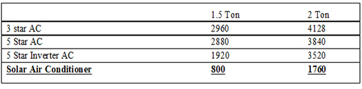 Annual Electricity Consumption (Unit for 1600Hrs) based on data from BEE